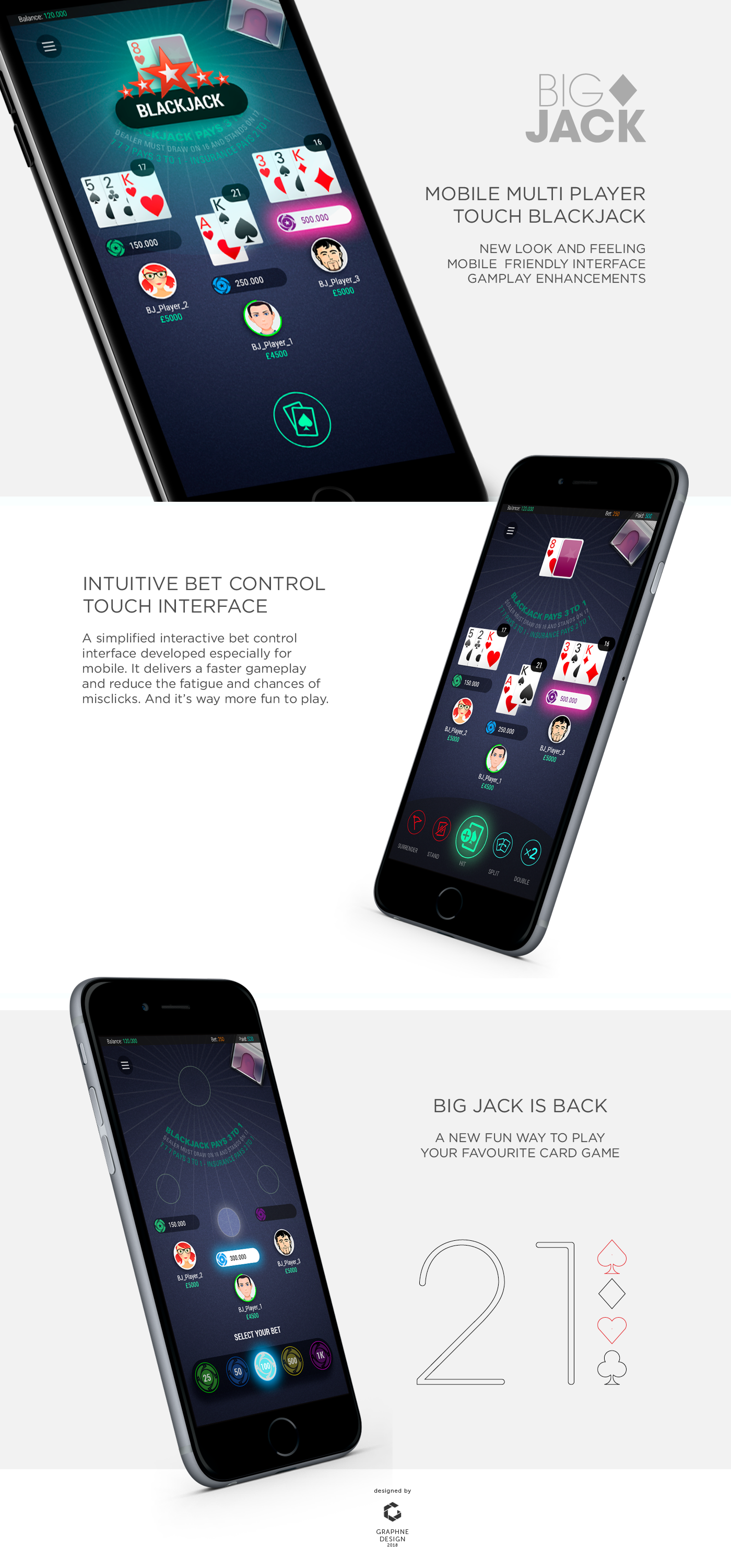 BlackJack Mobile Game Concept Design mockups - all rights reserved